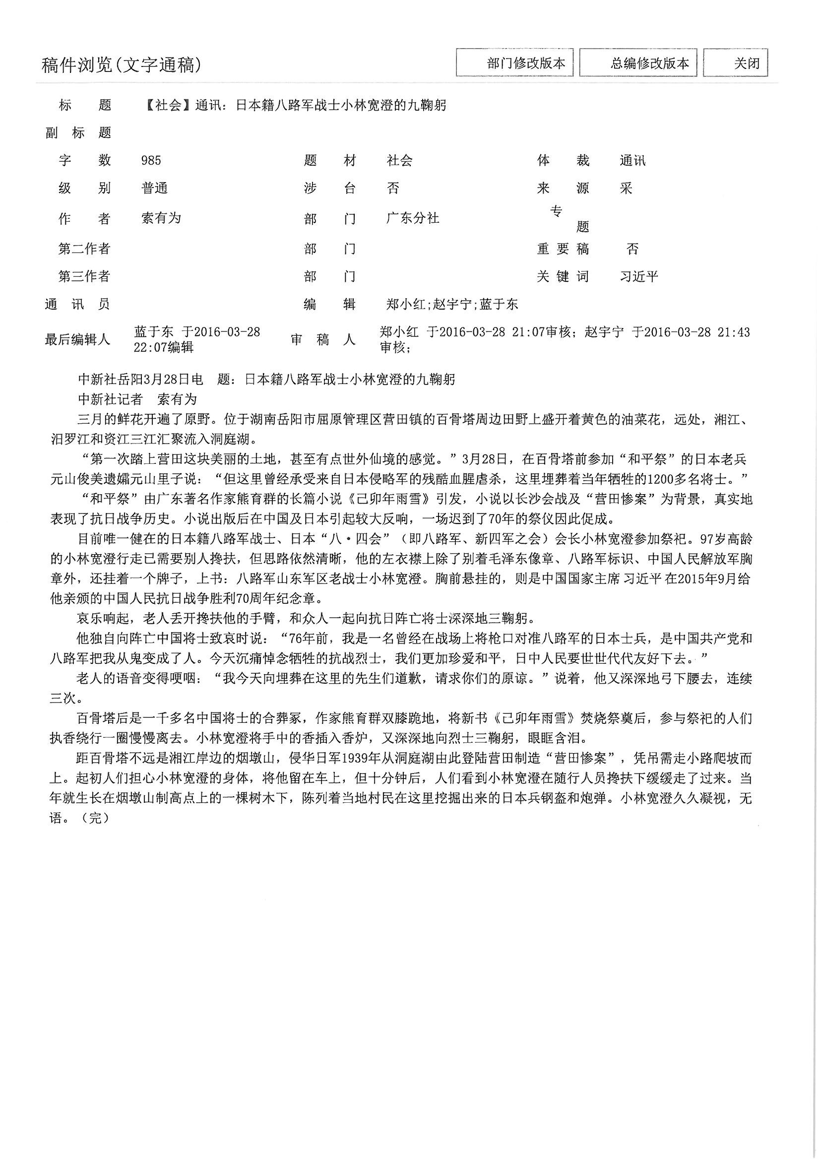日本籍八路军战士小林宽澄的九鞠躬