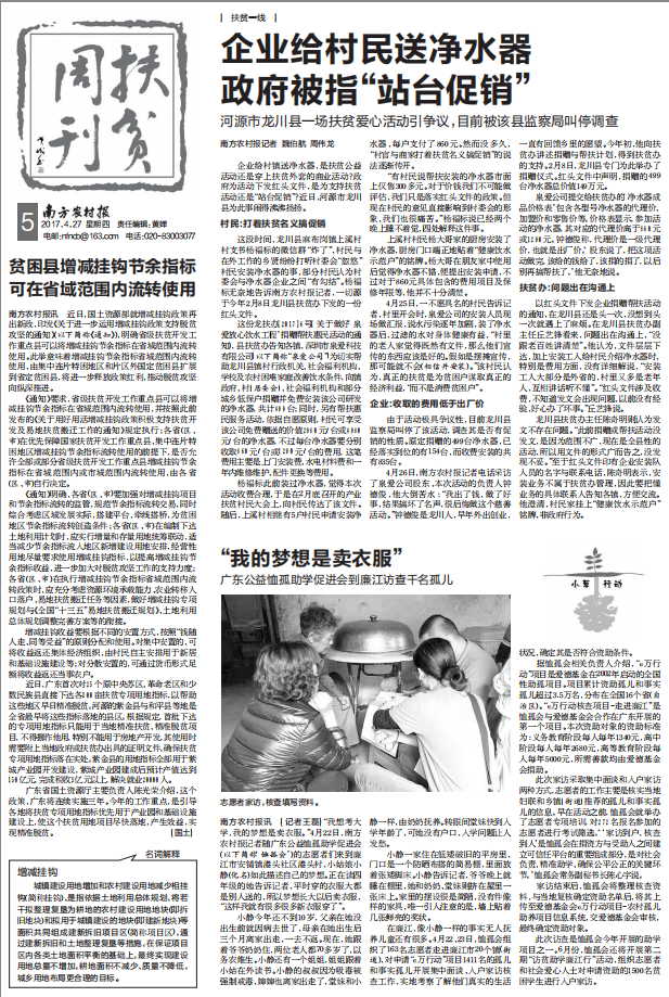 4月26日,南方农村报记者电话采访了泉爱公司股东、本次活动的负责人钟德俊,他大倒苦水:“我出了钱,做了好事,结果搞坏了名声,很后悔做这个慈善活动。”钟德俊是龙川人,早年外出创业,一直有回馈乡里的愿望。今年初,他向扶贫办讲述捐赠与帮扶计划,得到扶贫办的支持。2月8日,龙川县专门为此举办了捐赠仪式。红头文件中声明,捐赠的499台净水器总价值149万元。